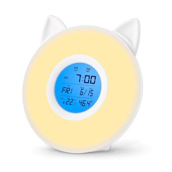 Thuis intelligente LED wake-up lamp temperatuur en vochtigheid FM kleurrijke nachtkastje nachtlampje kat oor wekker