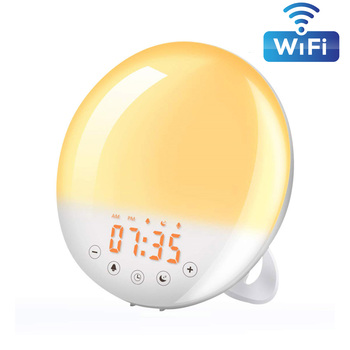 APP Control ไฟ LED ที่มีสีสันนาฬิกาปลุก Wake-up ไฟ WIFI เสียงอัจฉริยะ Sleep Wake-up ไฟวิทยุ FM